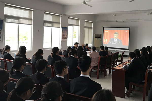 在聆聽習近平總書記代表第十八屆中央委員會向黨的十九大作報告的過程中,各個會場秩序井然,大家聚精會神聽報告、全神貫注作筆記,不時激動鼓掌。會后,師生們情緒高漲,暢談學習體會。