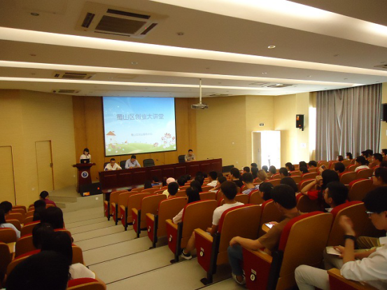 隨后,蜀山區創業指導講座和人社局長進校園座談會分別在學術報告廳和商學院會議室同步展開。創業指導講座中,蜀山區創業服務中心業務負責人,詳細則介紹了大學生創業補貼、創業擔保貸款、社保補貼等扶持政策,宣傳創業模擬實訓、專家指導、證照辦理等創業服務,提高了大學生對創業政策的認識。合肥青年壹品生態農業有限公司CEO章之博從創業初期的一無所知到成為公司CEO的故事講起,將自身創業的心路歷程和豐富的人生經驗傳授給大學生,并告誡大學生,創業不必退縮,關鍵是自己的頭腦要時刻保持清晰,將智慧的頭腦掌握在自己手中。